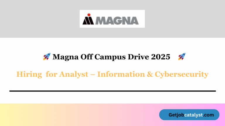 Company Name Magna Job Role Analyst Information & Cybersecurity Qualification BE/B-Tech/Bachelor’s Degree Experience 1–5 years Salary 5-9 LPA(Expected) Location Bangalore,...