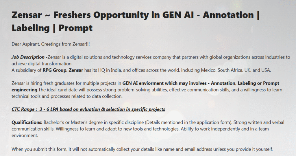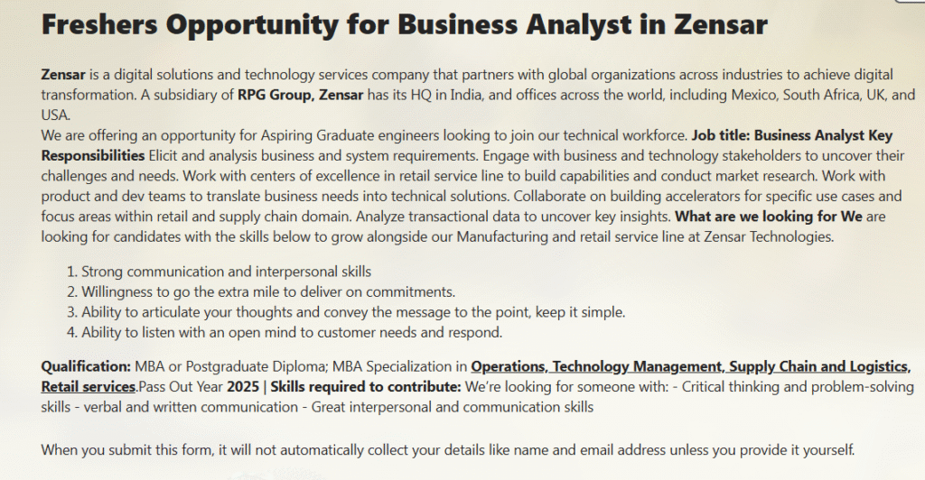 Whether you’re passionate about AI-driven systems, business insights, or LLM-based model optimization, Zensar’s 2025 hiring initiative offers a gateway to cutting-edge tech careers and hands-on experience in transformative global projects.