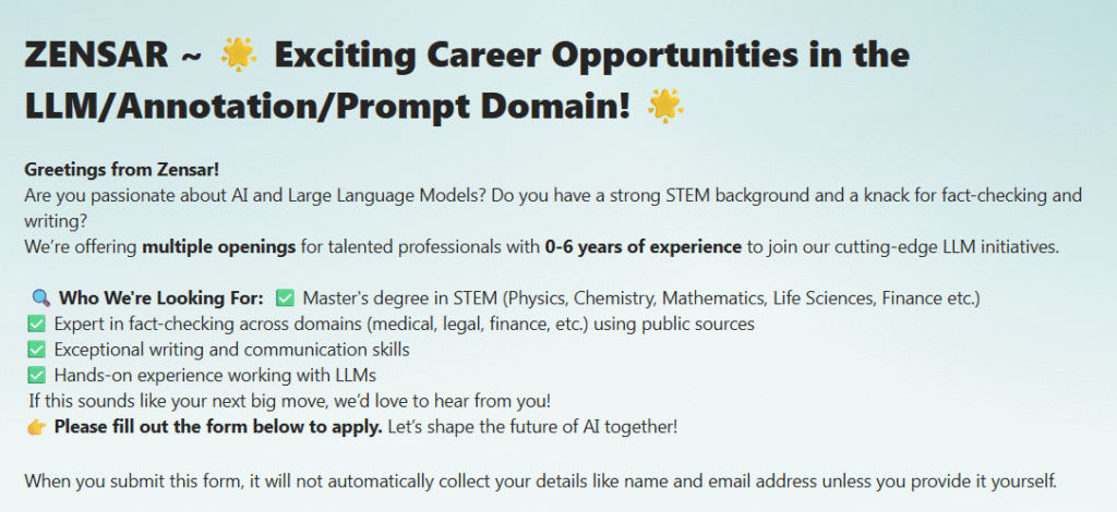 This position is tailored for candidates passionate about Large Language Models (LLMs), AI-driven research, and Prompt Engineering. You’ll work on enhancing the contextual accuracy and efficiency of advanced AI models.